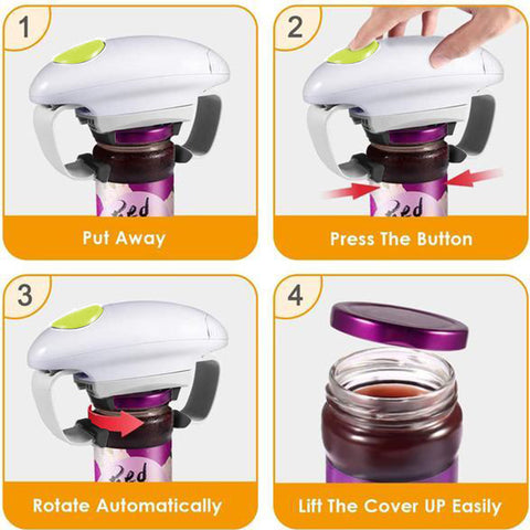 Denne automatiske krukkeåbner er til alle, der har svært ved at åbne krukker eller flasker selv. Måske har du smertefulde gigtplagede hænder, som bare ikke er, hvad de plejer at være. Så behøver du ikke lede længere og prøve den! Gør en ende på de frustrerende og smertefulde oplevelser med at åbne et glas eller en flaske ved hjælp af denne enhed.